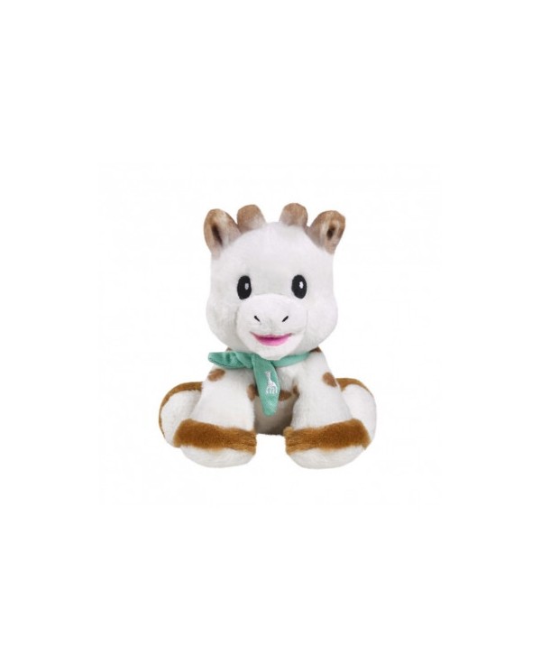 Este peluche de la jirafita Sophie puede sentarse o estar sobre las cuatro patas. El bebé puede agarrarla y manipularla fácilmente gracias a sus largas piernas.